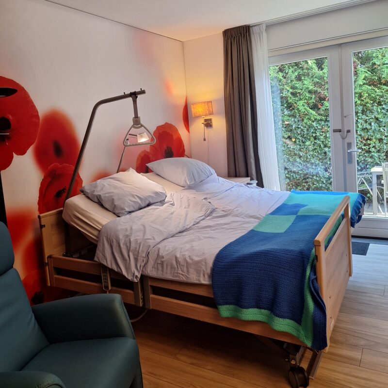 In onze hospices is het mogelijk dat naasten van bewoners blijven slapen op de kamer van de bewoner. Beide vestigingen beschikkingen over een duobed, dit bed kan tegen het bed van de bewoner worden geplaatst, zodat het een tweepersoonsbed wordt. Wij vragen hiervoor een vergoeding.